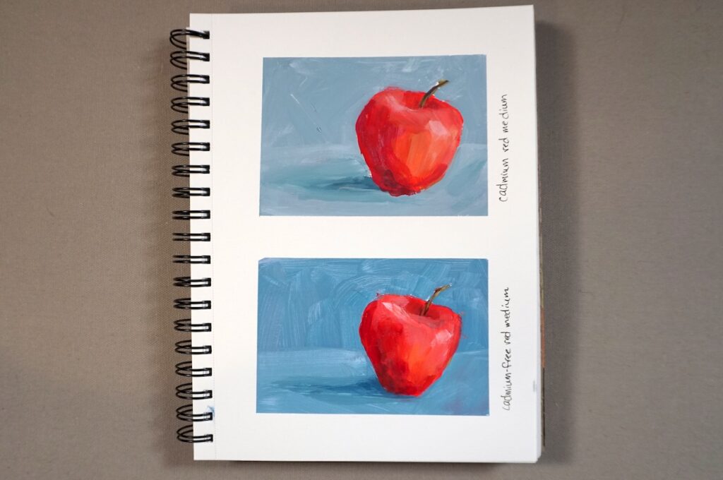 I did a pair of quick sketches of an apple and again, both cadmium red medium and cadmium-free red medium both seemed the same.