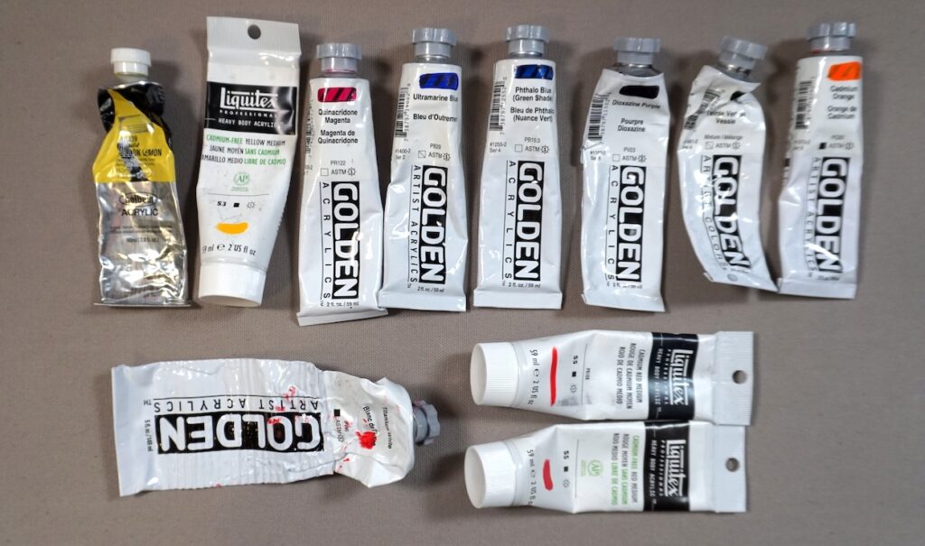 Pick up your own tubes of cadmium or cadmium-free acrylic paint at your local art store or on Amazon: